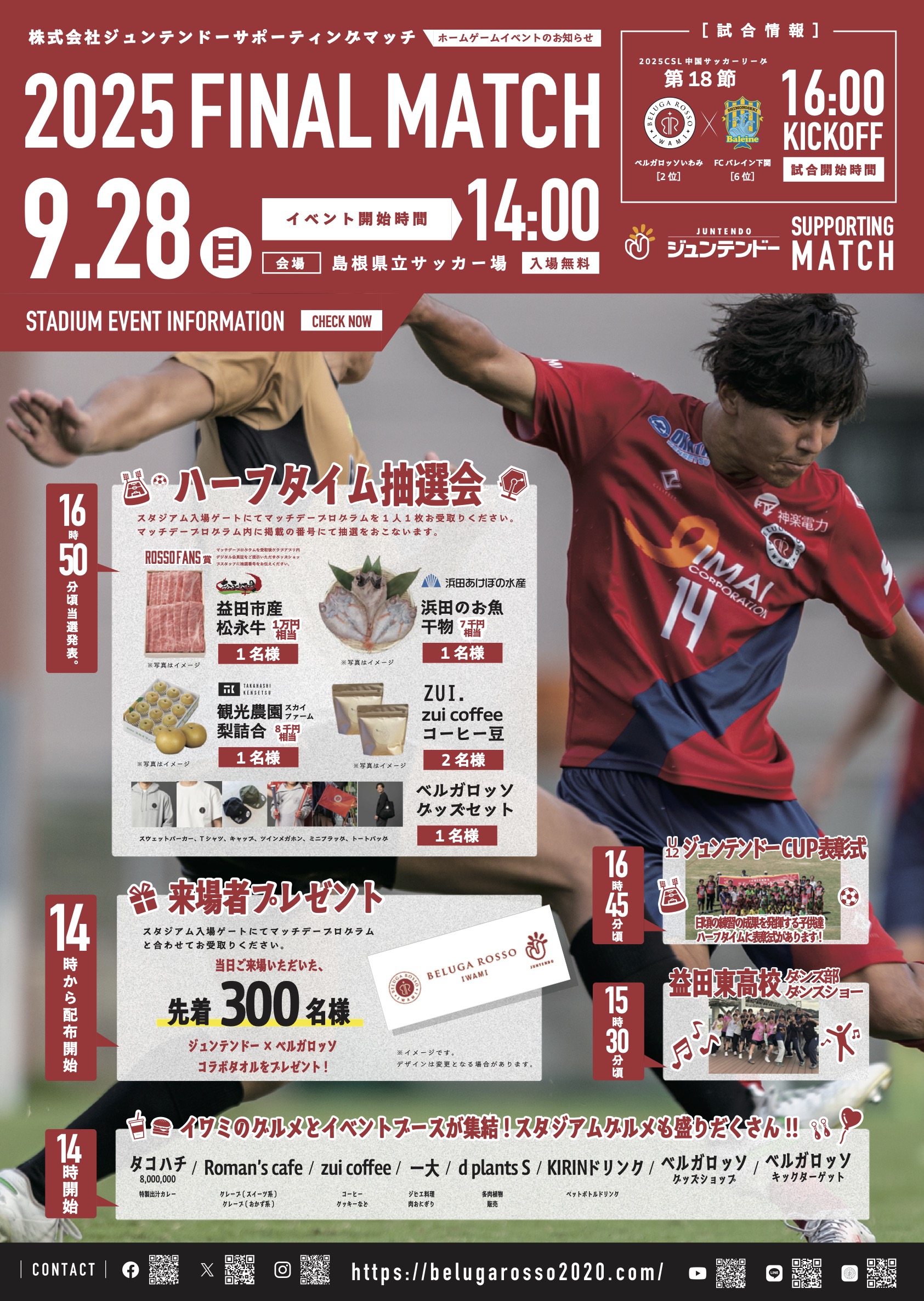 18:20 ベルガロッソいわみのホームゲームで開催するスタジアムグルメ『Be市(び〜ち)』終了