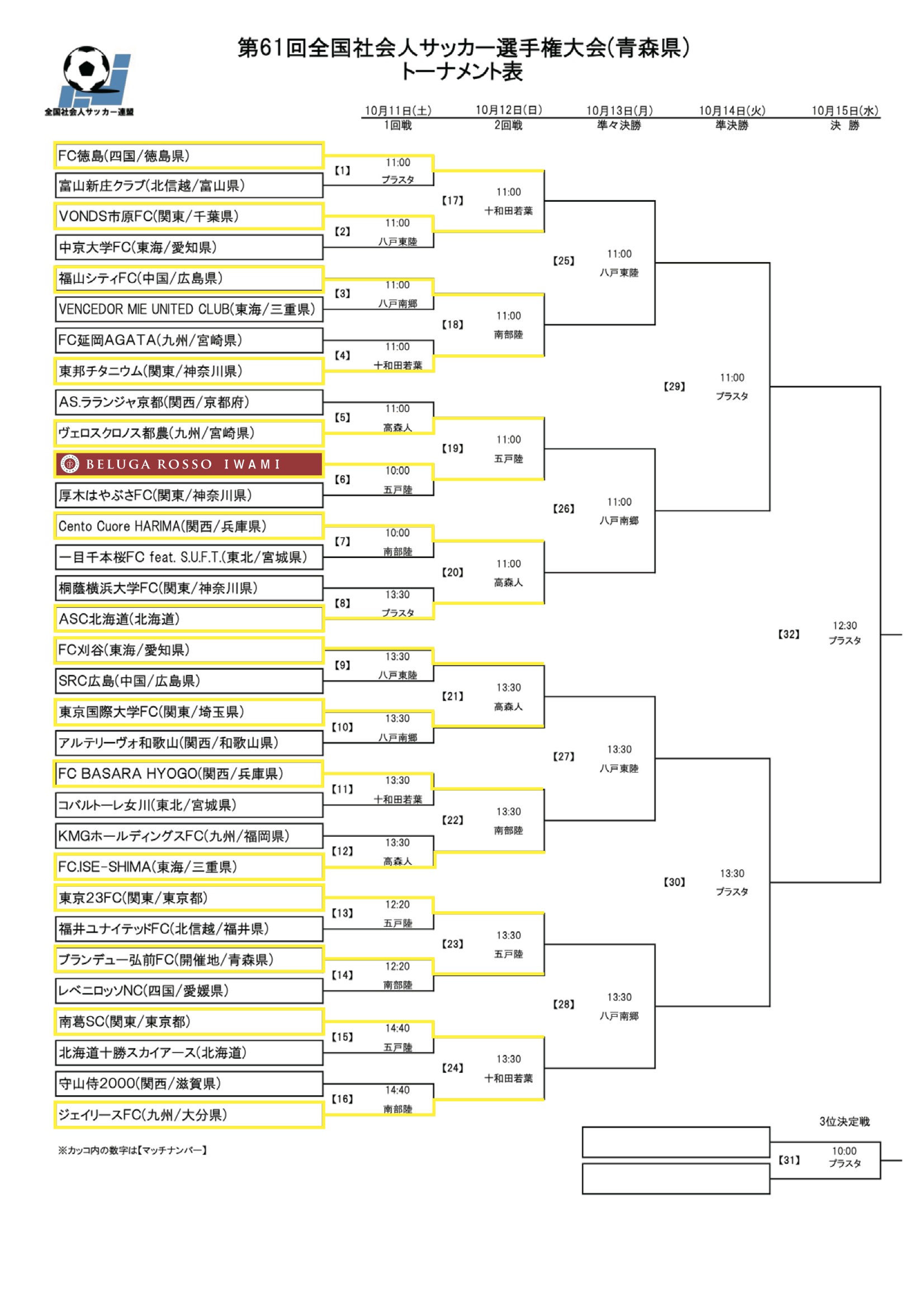 10月12日(日)第61回全国社会人サッカー選手権大会2回戦の対戦相手が決まりましたのでお知らせいたします。
