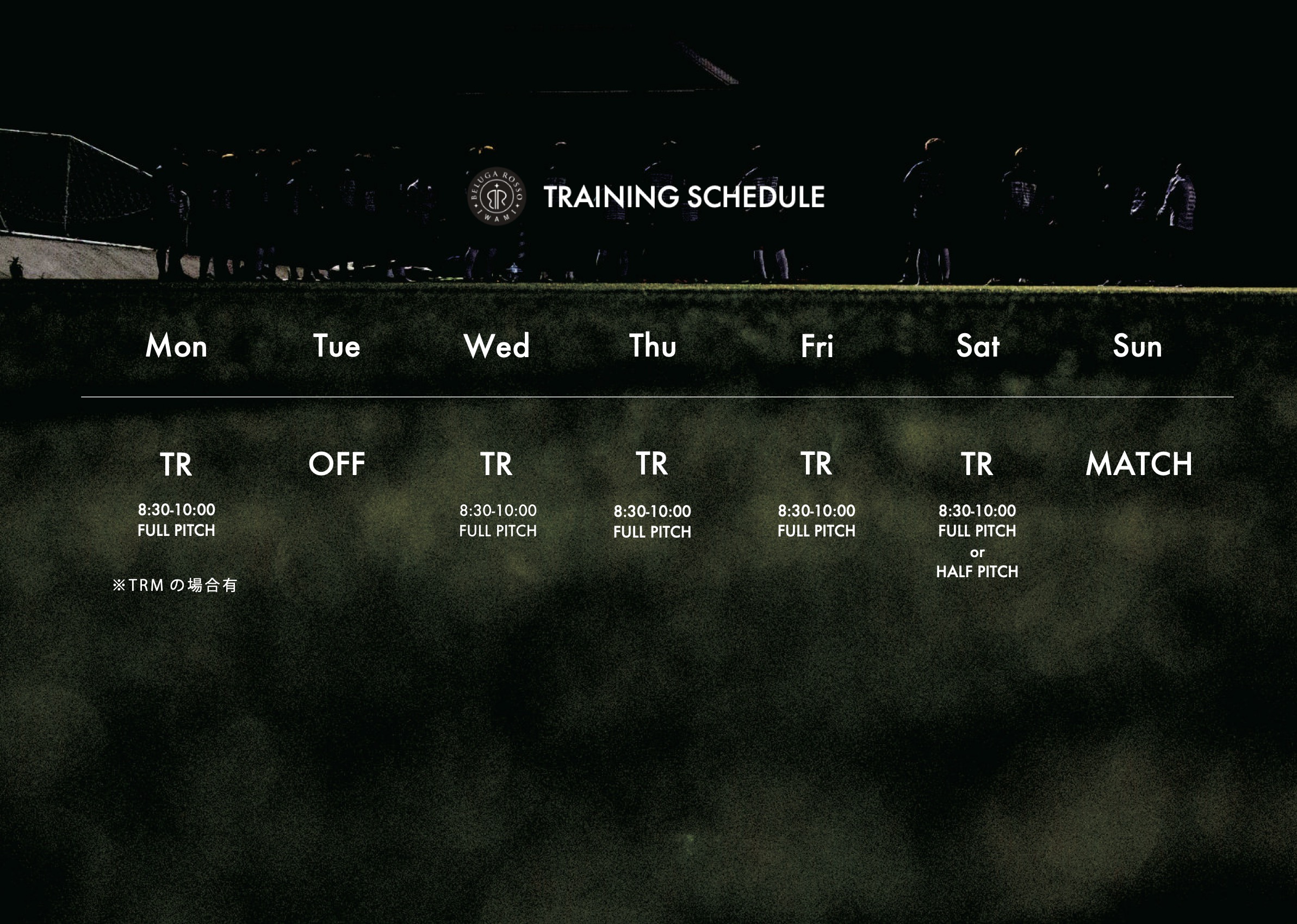 月曜、水曜〜金曜(8:30-10:30):全体トレーニング(月曜日にトレーニングマッチが入る可能性があります)