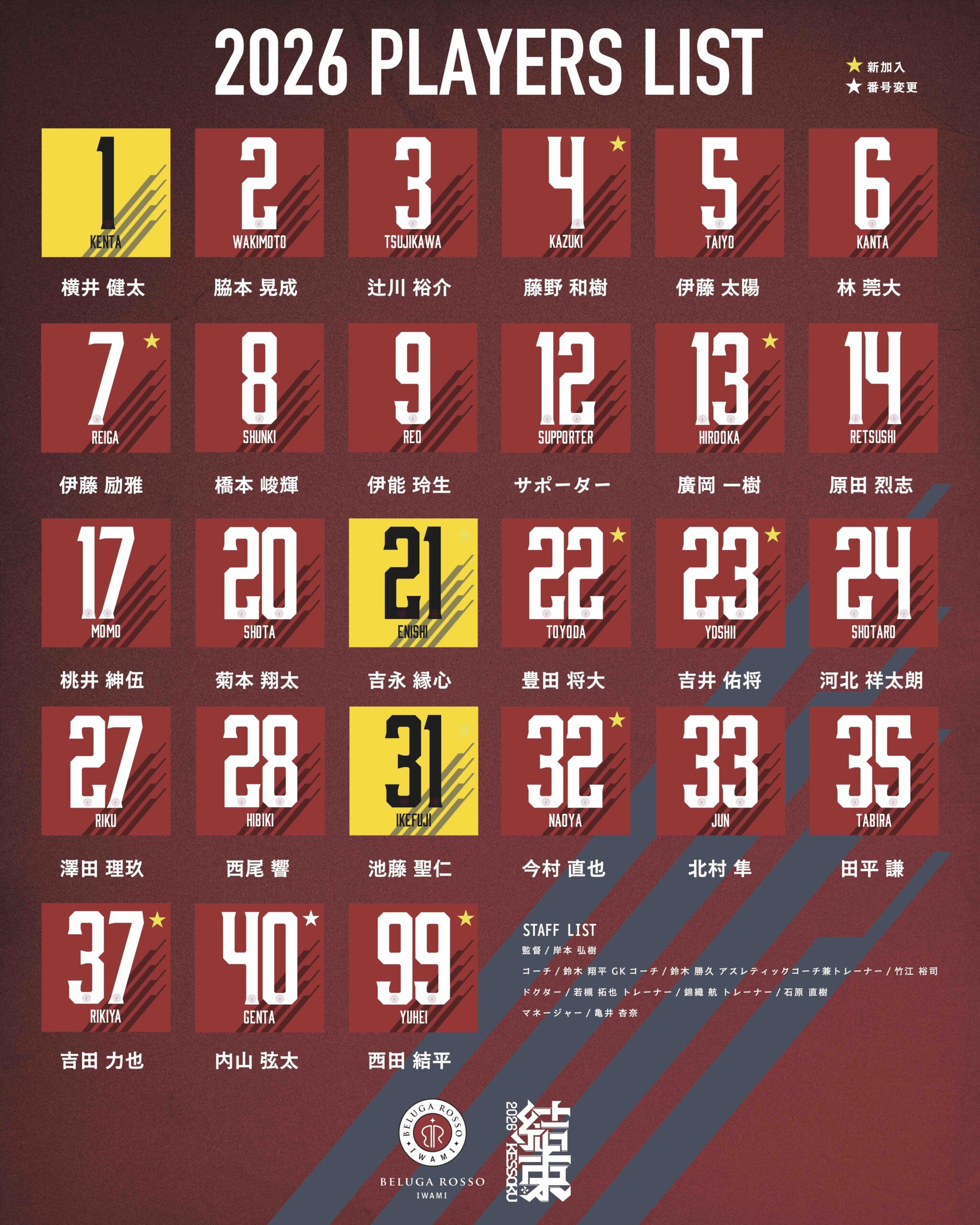 背番号は「99」、ユニフォームネームは「YUHEI」となります。