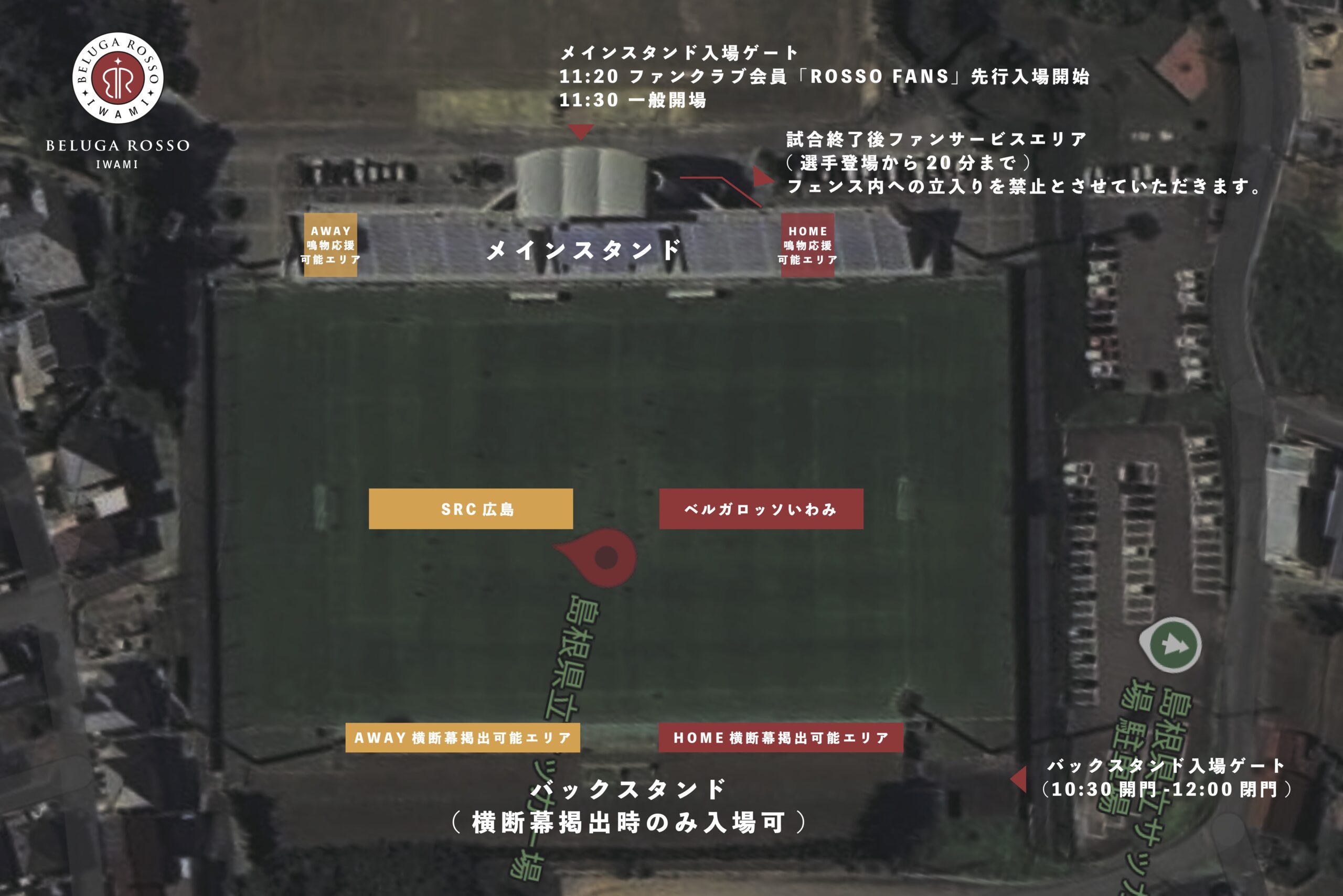 10:30 横断幕掲出開始(バックスタンド側ゲート開場(12:00まで))